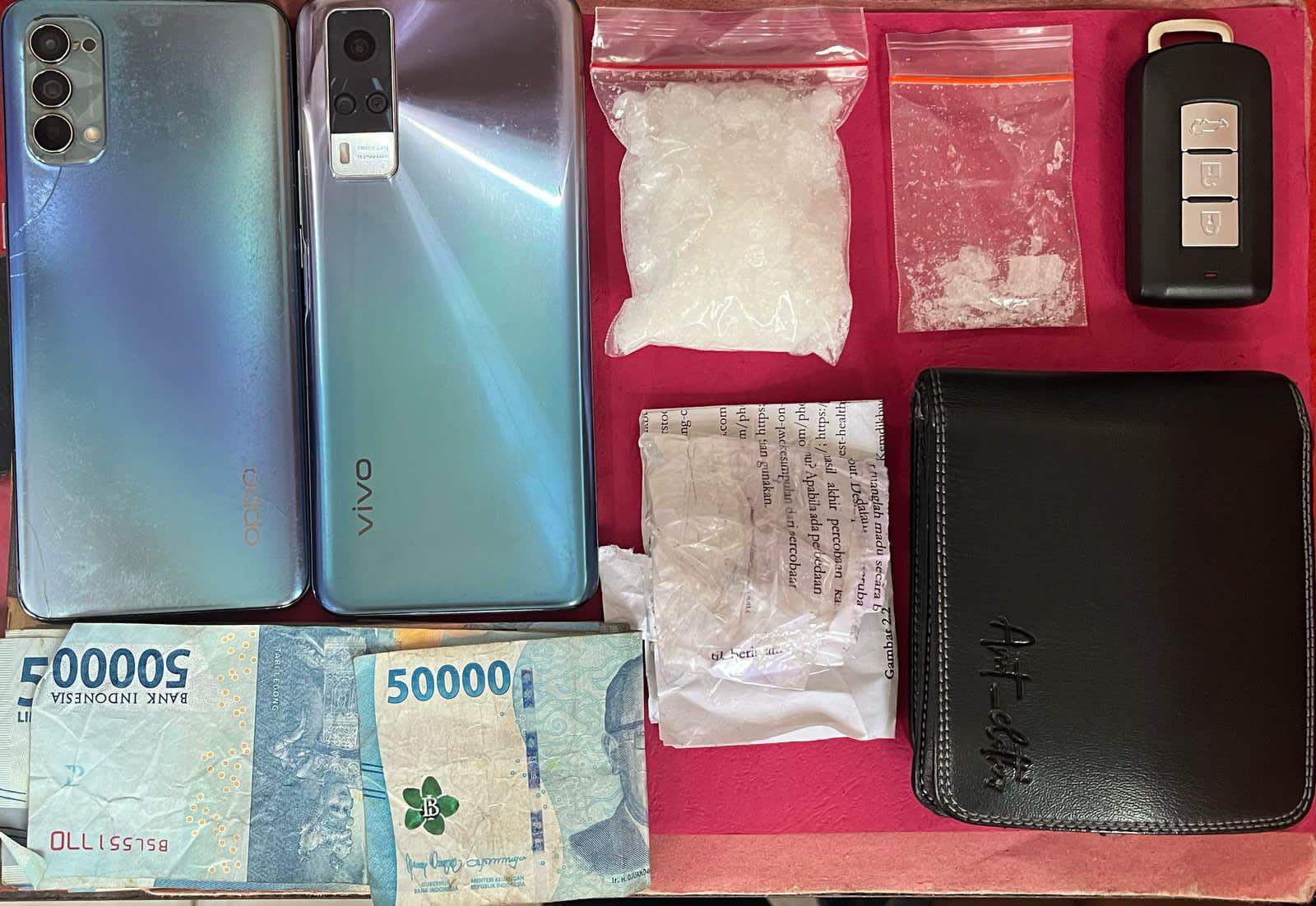 Tak hanya itu, petugas juga mengamankan barang bukti lain berupa satu potongan kertas putih dibalut lakban, satu dompet berwarna hitam, dua unit handphone, serta uang tunai sebesar Rp 2 juta.