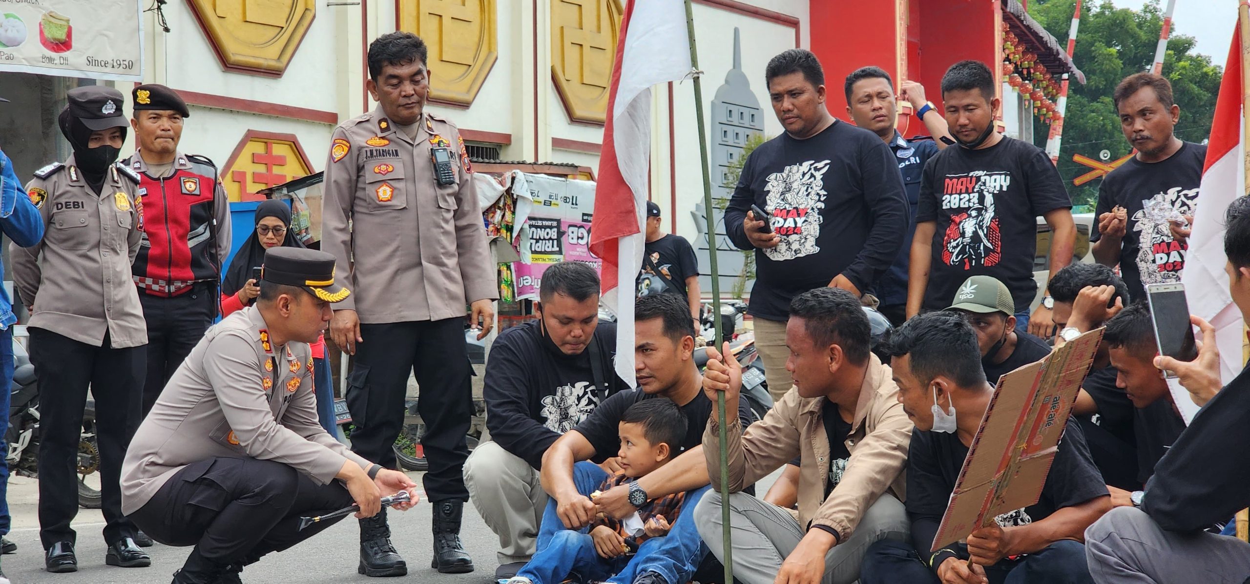 Selama kegiatan aksi unjuk rasa damai berlangsung polri tetap mengedepankan sikap yang profesional, tegas, namun tetap humanis, karna menyampaikan pendapat didepan publik merupakan tindakan yang dilindungi undang undang,” ucap Kapolres . | Humas Polres Asahan.