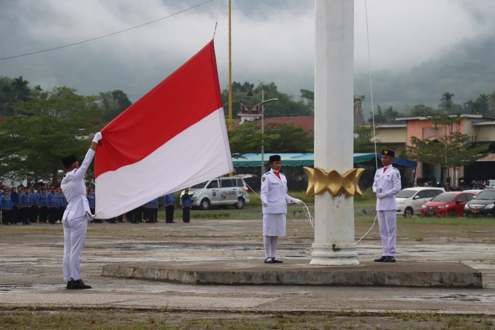 Tampak kegiatan tersebut Dandim 0206 Dairi Pakpak Bharat diwakili Pabung Mayor CBA M. Manurung, para pimpinan OPD Pemkab Pakpak Bharat, para Camat jajaran Pemkab Pakpak Bharat dan susunan barisan peserta upacara dari Pleton PNS Pemkab Pakpak Bharat dan Pleton Kodim 0206 Dairi/Pakpak Bharat serta barisan Pleton Personil Polres Pakpak Bharat.