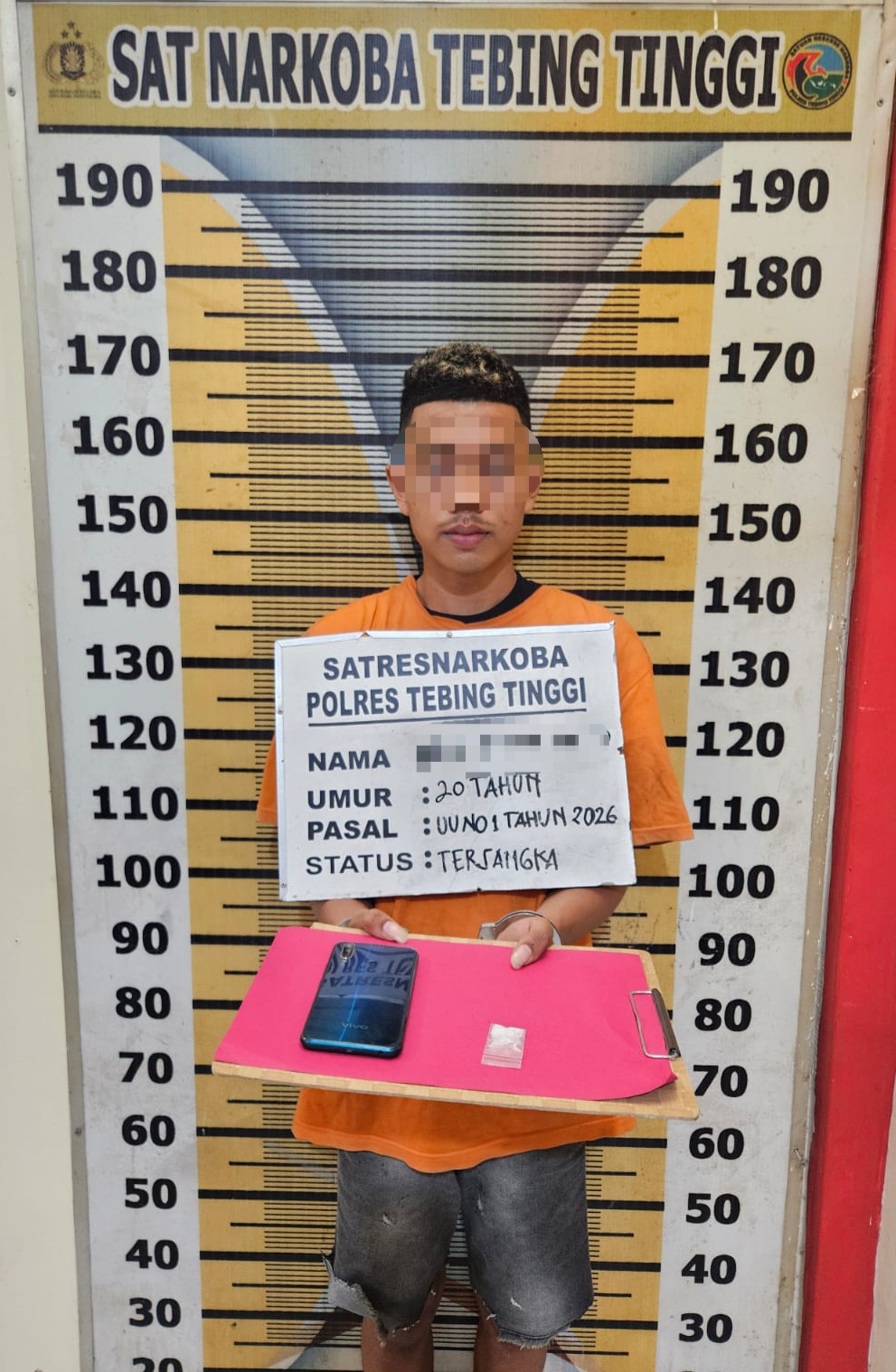 Kasat Resnarkoba Polres Tebing Tinggi, AKP Jimmy R. Sitorus, SH menyampaikan bahwa dari hasil penggeledahan itu, petugas menemukan barang bukti berupa satu plastik klip transparan berisi narkotika jenis sabu dengan berat 1,40 gram serta satu unit handphone merek Vivo warna biru.
