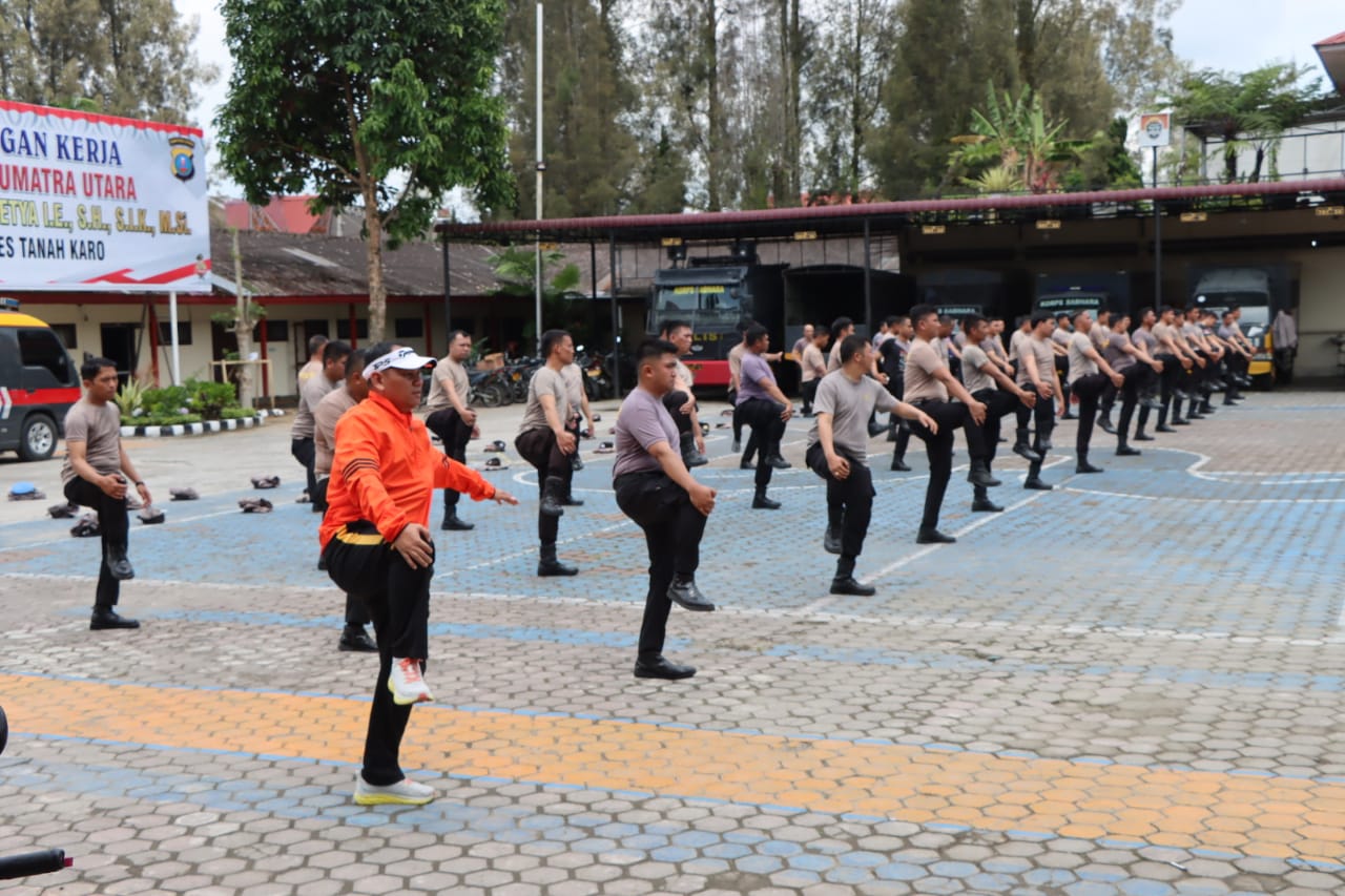 Kegiatan ini dilaksanakan di lapangan Apel Mapolres Tanah Karo, yang dipimpin langsung Kapolres Tanah Karo AKBP Wahyudi Rahman, S.H, S.I.K, M.M.