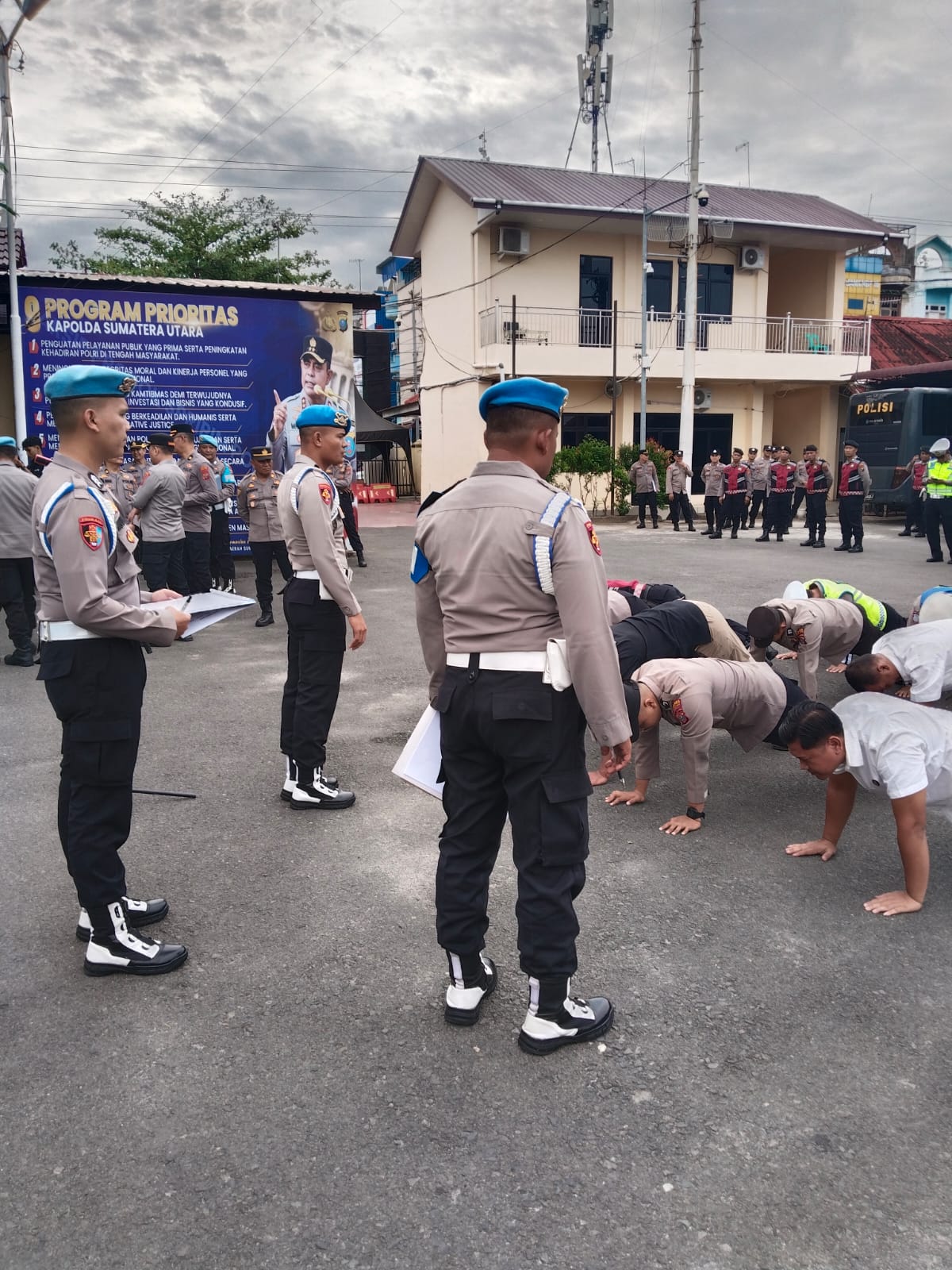 Personel Subbidprovos Bidpropam Polda Sumatera Utara melaksanakan kegiatan penegakan ketertiban dan disiplin (Gaktibplin) terhadap personel Polri dan ASN Polri di lingkungan Polres Tebing Tinggi. Kegiatan tersebut dilaksanakan usai pelaksanaan apel pagi, Jumat (27/2/2026).